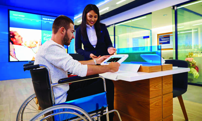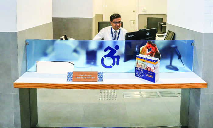 EmiratesNBD launched its first pilot accessible branch in June 2016. The branch transformation was a part of the bank’s pioneering efforts to align with UNSDGs and the #mycommunity initiative of having a disability friendly city by 2020. The branch is the bank’s flagship Jumeirah Al Wasl branch which has a personal banking, priority banking, business banking and wholesale banking unit all under one roof. The personal banking section is accessible to people with physical, visual and hearing impairments. It is equipped with 15 accessible elements from dedicated parking, to tactile floor indicators and a hearing induction loop to name a few.