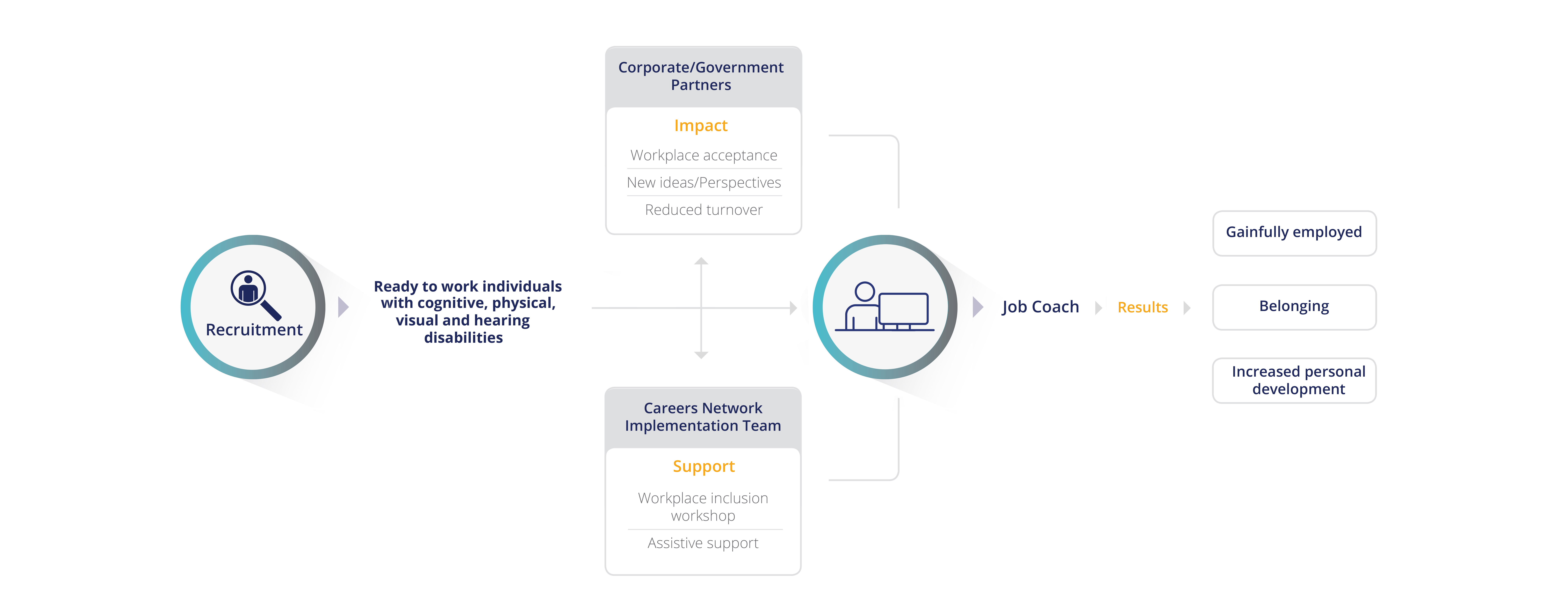 Our process is designed following extensive research. We collaborate with strategic partners and educators to create meaningful and long-lasting solutions. Learnings from our own experiences of creating success for people with disabilities have helped us chart a clear vision with purpose.